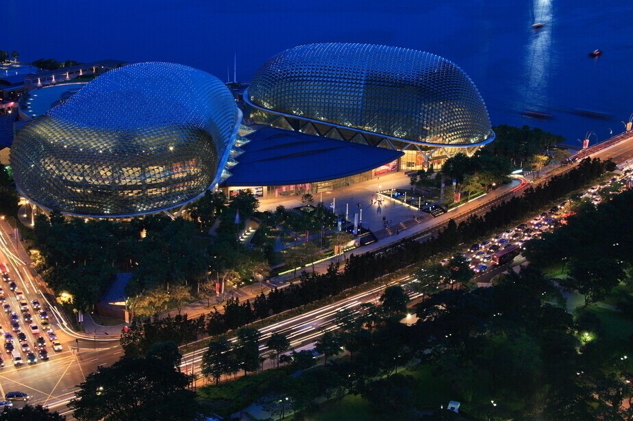 濱海藝術中心位于新加坡著名的濱海區,建筑總面積高達8萬多平方米,是新加坡最新的地標。由于其外形奇特突出,宛如兩顆大榴蓮,被人戲稱為榴蓮藝術中心。